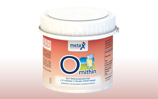 Lebensmittel für besondere medizinische Zwecke (bilanzierte Diät) zum Diätmanagement bei seltenen angeborenen Stoffwechselstörungen, z. B. Arginase-1-Mangel, Guanidinoacetat-Methyltransferase (GAMT)-Mangel, wenn eine Ergänzung mit L-Ornithin erforderlich ist.